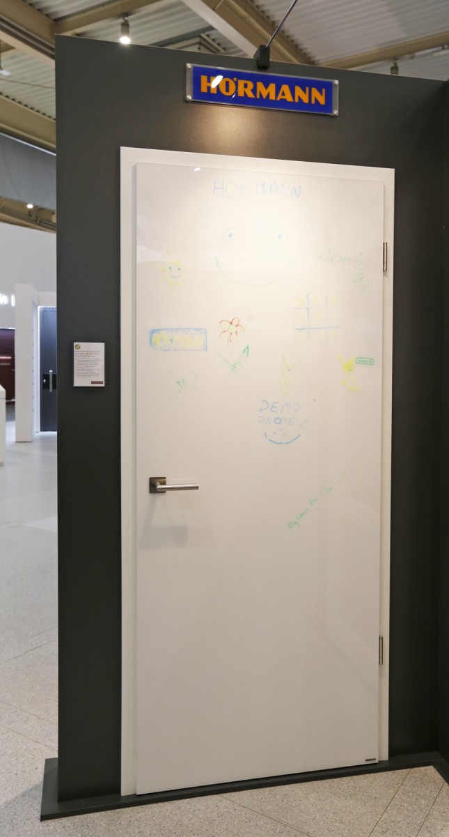 Na stoisku firmy Hörmann pokazano kilka linii wzorniczych drewnianych drzwi wewnętrznych, w tym nagrodzoną Złotym Medalem MTP serię ConceptLine. Niektóre z powierzchni tych drzwi pozwalają na wykorzystanie ich jako tablicy do rysowania w dziecięcym pokoju.