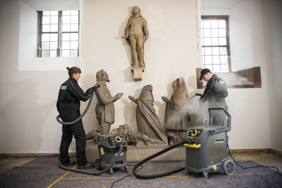 Profesjonalne urządzenia do czyszczenia parą SG 4/4 i SGV 8/5 firmy Kärcher zostały przetestowane przez niezależne, zewnętrzne laboratorium na obecność bakterii odpornych na wysoką temperaturę (Enterococcus hirae ATCC 10541). Dlatego też firma Kärcher zaleca stosowanie tej samej metody dezynfekcji powierzchni, które mogą być zanieczyszczone COVID-19.